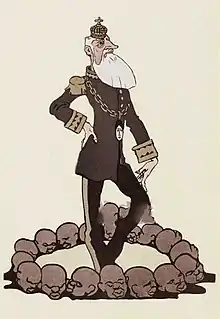 Американский писатель сравнивает короля бельгийцев с презираемым им русским царем Николаем II («некое царственное беспозвоночное; бедный молодой человек — жалостливый, не от мира сего»[7]), памфлет против которого в аналогичной манере был им написан через полгода после сатиры на Леопольда, которого щедро осыпает насмешкаии: