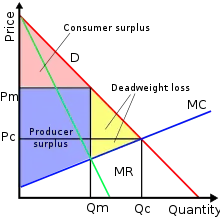 Прибыль от господствующего положения на рынке в долгосрочной перспективе может превысить убыток от применения стратегии демпинга[4][5] или других способов захвата рынка. В пределе, при захвате всей отрасли какого-либо блага, выпуск такого монополиста будет выпуском всей отрасли, а предложение этой фирмы будет предложением всей отрасли. Контроль рынка крупной[3] компанией-монополистом может достигаться за счёт того, что на рынке более не существует компаний с таким же капиталом, компаний, которые могли бы производить товары и/или предоставлять услуги в том же объёме, что и компания-монополист. Во многих странах приняты законы для охраны конкуренции и созданы антимонопольные службы.