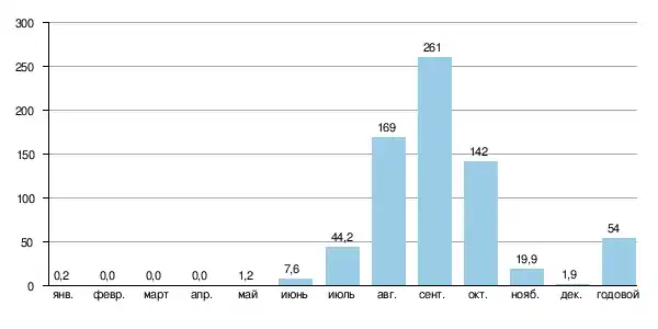 | Расход воды | 54 м³/с (в Атьем) |