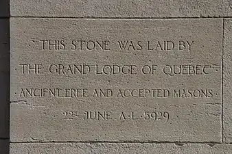 Торжественная закладка краеугольного камня состоялась 22 июня 1929 года, в присутствии 2000 масонов, членов 36 лож, которые торжественным шествием от улицы Дорчестер прошли до нового места строительства храма. Великая ложа Квебека впервые провела своё собрание в новом храме 12 февраля 1930 года, на её шестидесятой ежегодной ассамблее. Храм также является мемориалом масонов, погибших в Первой и Второй мировых войнах и в Корейской войне[3].