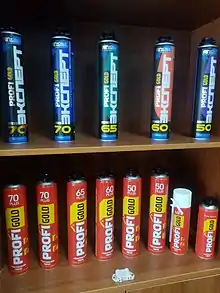 Профессиональная монтажная пена в России обыкновенно маркируется некоторыми числами (например, 50, 65, 70), характеризующими выход пены из баллона. Анализ рецептур показал, что эти числа соответствуют объёму закачанных в баллон сжиженных газов при нормальных условиях.