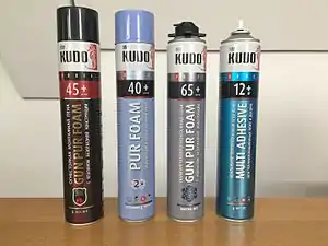 - Пропеллент (от англ. propellant — газ-вытеснитель): — смесь газов, находящаяся в баллоне частично в газовой фазе, частично сжиженных, частично растворённых в преполимере. Пропеллент выполняет две основные функции: выталкивание преполимера из баллона и образование пузырьков пены.