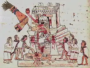 Поскольку в жертву ацтеки приносили в основном военнопленных, требовалось их постоянное поступление, для чего решено было начать регулярные ритуальные «цветочные войны» между городами Тройственного союза и городами долины Пуэбло — Тлашкала, Уэшоцинко и Чолула (ранее Чололлан). По одной из версий, идея «весёлой войны цветов» принадлежала сиуакоатлю Тлакаэлелю, брату тлатоани Монтесумы. Согласно одной из хроник, Тлакаэлель воспротивился намерениям брата принести пленных в жертву богу Уицилопочтли в храме, работы в котором ещё не были окончены. Чтобы боги получили источник регулярного поступления военнопленных для жертвоприношений, решено было организовать своеобразный «рынок съедобных воинов», каковым и стали «цветочные войны» с городами-государствами долины Пуэбло. Кровь воинов, пролитая в этих сражениях, также считалась принесённой в жертву богам Уицилопочтли и Тескатлипоке. В свою очередь, города долины Пуэбло («враги дома») участвовали в этих войнах для принесения жертв богу Камаштли[6][19].