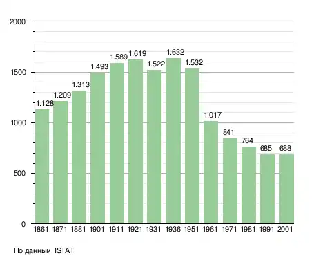 Население составляет 676 человек (2008 г.), плотность населения составляет 37 чел./км². Занимает площадь 18 км². Почтовый индекс — 61010. Телефонный код — 0541.