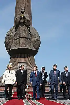 ![]() Президент России Дмитрий Медведев у монумента, 2008 год | |