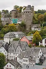 Старая часть городка Моншау и возвышающиеся над ним башни замка