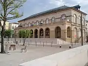 | Здание префектуры Ландов (1818 год) | Фасад церкви де ла Мадлен (1825 год) | Городская библиотека (1846 год), служившая мэрией до 1946 года | Арены Плюмасон (1889 год) | Мэрия Мон-де-Марсана (1901 год) | Городской театр Мон-де-Марсана |