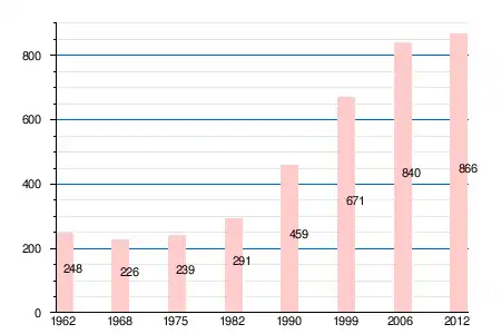 Население коммуны в 2011 году составляло — 864 человека[5], а в 2012 году — 866 человек[4].