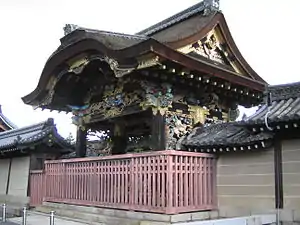 - Карамон (яп. 唐門, «китайские ворота») — для ворот этого типа характерно использование архитектурного элемента карахафу. Карамоны являлись символом власти, проявляемой через архитектуру.[8]
