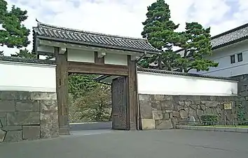 - Кораймон (яп. 高麗門 «корейские ворота») — ворота с черепичной, остроконечной крышей на двух столбах, а также двух небольших крыш над второстепенными столбами (яп. 控柱 хикаебашира) в задней части ворот[8].