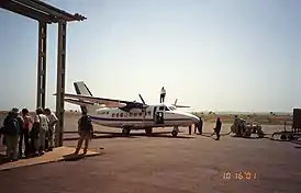 Летом 2018 года аэропорт был обстрелян террористами.[4]Беспорядки связывают с восстанием Туарегов 2012 года - экстремисты продолжают совершать нападения, несмотря на подписанное в 2015 году мирное соглашение.[5]
