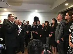Инаугурация президента Гватемалы Джимми Моралеса состоялась 14 января 2016 года. На церемонии присутствовали вице-президент США Джо Байден, бывший король Испании Хуан Карлос I, лидеры стран Латинской Америки. Во время инаугурации Джимми Моралес призвал граждан сплотиться для борьбы с коррупцией и бедностью, а также поблагодарил тех, кто уже ведет эту борьбу[12]. Наблюдатели отмечают в выступлениях нового президента мотивы мессианства и правого популизма[13]. Иногда Моралеса причисляют к политическому типу лидера-каудильо, характерному для гватемальской истории[14].