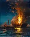 Фрегат «Филадельфия» объятый пламенем в доках Триполи, 16 февраля 1804 года. Около 1897.