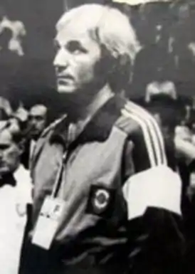 ![]() Владимир Моребис на церемонии награждения своего ученика Руслана Тарамова на Играх доброй воли 1986 года | |