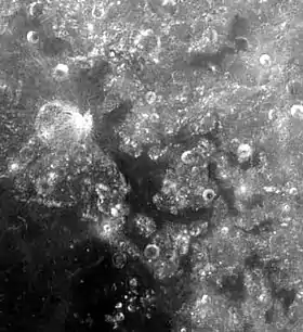 ![]() Море Змеи — тёмное пятно в центре фотографии. В нижнем левом углу видно окончание моря Кризисов. | |