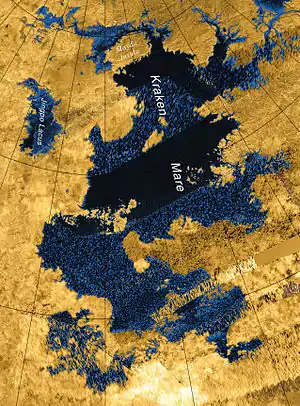 Мо́ре Кра́кена (лат. Kraken Mare) — крупнейшее углеводородное море Титана (спутника Сатурна). Находится в северном полушарии, координаты центра — 68° с. ш. 50° в. д.68° с. ш. 50° в. д.[1] Море было обнаружено в 2007 году зондом «Кассини» и через год получило название по имени мифического морского монстра Кракена. С помощью спектрометрии было установлено, что море Кракена является углеводородным.
