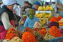 Продажа корейской моркови на ашхабадском рынке в Туркмении