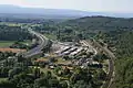Город между автомагисталью и железной дорогой.