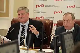 ![]() Вадим Морозов и начальник МЖД Владимир Молдавер, 2013 год | |