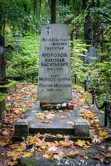 Похоронен на Смоленском кладбище в Ленинграде, памятник на его могиле59°56′37″ с. ш. 30°14′49″ в. д. был установлен только в 1980-е годы и сейчас находится под охраной государства[1].