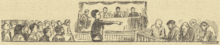 В зале поднялась суматоха. Зрители повскакали с мест, задние ряды хлынули на сидящих, у дверей произошла давка. Председатель суда с трудом восстановил порядок…