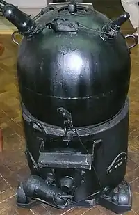 - Гальваноударные — срабатывают при ударе корабля по выступающему из корпуса мины колпаку, в котором находится стеклянная ампула с электролитом гальванического элемента