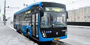 Подвижной состав также представлен электрическими автобусами, которые выпускают заводы КамАЗ и ЛиАЗ (второй поставляет автобусы под брендом ГАЗ)[32]. По состоянию на 20.08.2020 года в Москву поступило 455 электробусов, 193 из которых в филиал «Северо-Восточный» и 262 в филиал «Центральный», так что три контракта на 2019 год по электробусам полностью закрыты, а также исполняются контракты на 2020 год. С 15.07.2019 года электробусы работают на маршруте Sk (ныне перенумерован в Sk1 и немного изменён в районе ИЦ Сколково), с 10.08.2019 года на маршруте 107, с 09.09.2019 года троллейбусный маршрут Т42 был полностью переведён на электробусы, с 26.09.2019 года маршрут Т25 был переведён в Филиал «Центральный», а 5 ноября 2019 года он был возвращён обратно в Филиал «Северо-Восточный», летом 2020 года, маршрут был возвращён в Филиал «Центральный» (Ленинградская площадка). Таким образом, по состоянию на 20.08.2020 года 20 маршрутов обслуживаются Филиалом «Центральный» (Площадки Филёвская и Ленинградская). Контракт на 2019 год по переводу маршрутов на обслуживание электробусами был закрыт, оставался маршрут № 271, который 15 августа 2020 года был отменён. На данный момент исполняются контракты по переводу маршрутов на обслуживание электробусами. В СВАО электробусы начали работать на маршруте № 778, обслуживаемом Филиалом «Северо-Восточный», летом 2020 года, маршрут был переведён в Филиал «Центральный» (Ленинградская площадка). Обновление данных по электробусам происходит в режиме реального времени, сразу же после получения информации. С 9 сентября 2019 года троллейбусная площадка филиала «Северо-Восточный» стала первым в Москве транспортным предприятием, полностью отказавшимся от троллейбусов[33] — поводом для этого на электробус переведён маршрут № 14, а на маршрут № 41 вышли автобусы. Предпоследним на электробус был переведён маршрут № 789, последним на электробус был переведён маршрут № 38, первый следует от Холмогорской улицы до Метро Ботанический сад, второй следует от Рижского вокзала до Метро Китай-Город. В 2020 году началась поставка ещё 300 электробусов, вдобавок по допнику ожидалась ещё одна партия электробусов в размере 300 штук, однако после переигрыша тендеров на 2020 год допника не будет и будет поставлено только 300 электробусов — все они пойдут в филиал «Центральный»: 200 единиц на Ленинградскую площадку и 100 единиц на основную Давыдовскую площадку. В 2020 году будут введены ряд электробусных маршрутов, начинающихся от Метро «Ховрино» и обслуживаемые Ленинградской площадкой филиала «Центральный». На западе Москвы первыми были установлены зарядки на к/ст Филёвский парк, в связи с чем, с 10.08.2019 года на электробусах поехал автобусный маршрут № 107[34], далее зарядки были установлены на к/ст Крылатское, Метро Озёрная, Метро Парк Победы, Площади Киевского вокзала, а также на остановке кинотеатр Ударник. По состоянию на 25.01.2020 года зарядки заработали на Площади Киевского вокзала, к/ст Крылатское и Метро «Озёрная», зарядки на к/ст Метро Парк Победы и на остановке Кинотеатр Ударник заработали с 6 мая 2020 года, со дня запуска маршрута т7. Спустя некоторое время после перезапуска на электробусы, маршруту будет отменён оттянутый разворот через метро Ломоносовский проспект, с Воробьёвского шоссе он тут же повернёт на Улицу Косыгина.