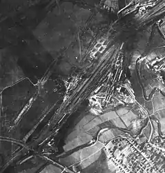 ![]() Аэрофотоснимка 1941 года. К востоку от станции виден разворотный треугольник, позднее застроенный промзоной. К западу - станционный посёлок. | |