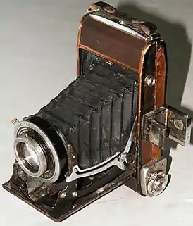 - Размер кадра 6×9 см (8 кадров на плёнке типа 120).