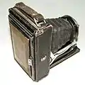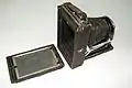 - Тип применяемого фотоматериала — фотопластинки с размером кадра 6,5×9 см. Кассеты для фотопластинок металлические, односторонние, приставные (на место задней стенки камеры).