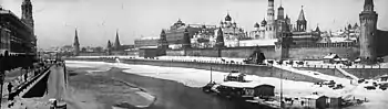 Кремлёвская набережная, вид из-за реки от Москворецкого моста