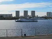 Теплоход «Александр II» на Химкинском водохранилище вблизи Северного грузового речного порта.