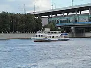 Теплоход «Москва-87» на Москве-реке вблизи Лужнецкого метромоста.