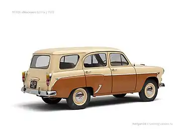 Москви́ч-423 — первый в СССР серийный автомобиль с грузопассажирским пятидверным кузовом универсал, выпускался в 1957—1963 гг. В его конструкции использовалась та же боковая панель с изогнутыми водосточными желобками, та же задняя панель с высоким порогом багажной крышки. Заднее сиденье складывалось, образуя грузовой отсек длиной 1473 мм и шириной 1220 мм. При сложенных задних сиденьях машина могла перевозить 250 кг груза и двух человек, включая водителя. Для запасного колеса под полом размещалась горизонтальная ниша. Задние рессоры были на 5 мм шире, чем у базовой модели Москвич-402. Задняя пятая дверь открывалась налево, её порог находился на высоте 760 мм от земли. С 1961 года выпускалась более простая версия кузова универсал с угловатыми рамками задних дверей и идущим вдоль всей крыши цельным водосточным желобком.