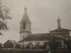 ... приселок Сабуров на Москве реке, а в нем церковь во имя Николая Чюдотворца, да придел святого пророка Илии, деревянная, с папертью, клетцки, ветха, в церковь двои двери... колокольня на одном столбе, на ней три колокола, а церковь от попова двора и от крестьянских дворов в двадцати в пяти саженях.