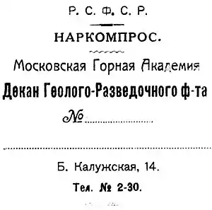 - Рязанов, Владимир Дмитриевич — разведочное дело, кафедра разведочного дела