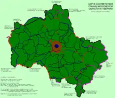 | Московская губерния в 1708 году | Карта соответствия границ Московской области и губернии | Шоссейные и грунтовые дороги Московской губернии |