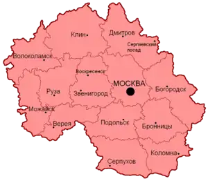 - 1781 год. Из осколков прежней Московской губернии, главным образом, в границах Московской провинции, организуется новая Московская губерния в составе 15 уездов: Волоколамский уезд, Можайский уезд, Верейский уезд[4], Подольский уезд, Никитский уезд, Серпуховский уезд, Коломенский уезд, Бронницкий уезд, Московский уезд, Воскресенский уезд, Клинский уезд, Дмитровский уезд, Звенигородский уезд, Богородский уезд, Рузский уезд.