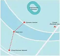 - Новая Лига (55°42′39″ с. ш. 37°32′48″ в. д.) — на правом берегу Москвы-реки на Воробьёвской набережной. По состоянию на январь 2020 года работа станции ограничена в связи тем, что горнолыжный склон не работает. В дальнейшем станция будет в основном использоваться для подъёма горнолыжников на станцию «Воробьёвы горы»[2].