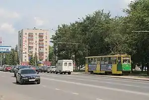 - К домам середины улицы — трам. 1, 5, авт. 9т, 17, 24, 24а, 30, 179, 300, 308, 317, 320, 321, 322, 324, 325, 330, 346, 379 ост.: «9-й микрорайон».