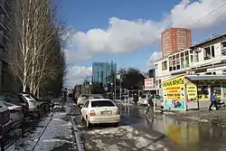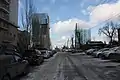 Участок между улицами Добролюбова и Автогенной застроен как малоэтажными зданиями в (1 и 2 этажа), так и девятиэтажными жилыми домами, расположенными между Московской и Ленинградской улицами. Кроме того, между улицами Кирова и Московской (рядом с Автогенной) находится два 17-этажных жилых комплекса.
