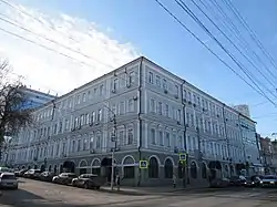 Офисное здание. Управление мелиорации. В существовавшем до 1968 года на этом месте здании Саратовского Дворянского собрания в апреле-мае 1904 года прошла выставка «Алая роза»[18]. |