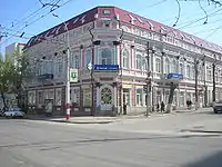Дом Д. М. Вакурова. В здании была открыта первая книжная лавка в городе. Памятник градостроительства и архитектуры федерального значения (как «Усадьба, 1825 г.»)[15] |
