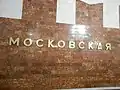 Указатель на платформе (красным шрифтом обозначены станции Автозаводской линии в центре зала, синим — станция Сормовско-Мещерской линии на боковой платформе)