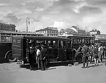 Первый автобусный маршрут в черте Москвы (Тверская застава — Каланчёвская площадь) был открыт 8 августа 1924 года[8]. На линии работали в основном английские машины «Лейланд», способные перевозить только 28 пассажиров. Позднее выпуск аналогичных машин был налажен в Ярославле и на ЗИСе. В 1920—1930-е годы активно развивалась маршрутная сеть, но, тем не менее, вплоть до 1950-х автобус играл очень незначительную роль в перевозках (около 8 %).