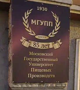 Федеральное государственное бюджетное образовательное учреждение высшего образования Моско́вский госуда́рственный университе́т пищевы́х произво́дств (МГУПП) — техническое высшее учебное заведение России по подготовке специалистов в области биотехнологий, для пищевых и перерабатывающих отраслей агропромышленного комплекса[1]. Основан в 1930 году.[1]