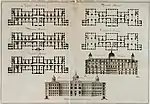 По проекту, составленному Карлом Бланком при участии Ю. М. Фельтена, вдоль берега реки Москвы должны были быть выстроены три замкнутых корпуса-каре с обширными внутренними дворами: западный для мальчиков, восточный для девочек, и соединяющий их центральный (корделож, фр. corps de logis). Торжественная закладка состоялась 21 апреля 1764.