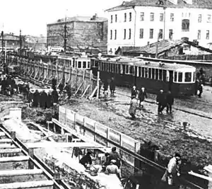 В 1933 году утвердили технический проект первой очереди метрополитена, тогда же трест Метрострой начал основные строительные работы. Маршрут первой очереди разработали, исследовав пассажиропоток московского трамвая: подземкой решили повторить самые напряжённые его маршруты[18].