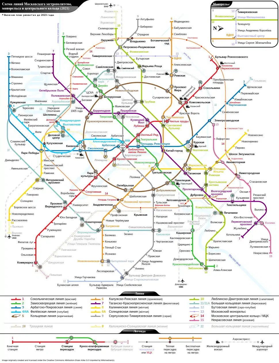 Со временем на официальной схеме метрополитена появились обозначения и другого скоростного транспорта Москвы: Московского монорельса, Аэроэкспрессов и автобусов до аэропортов, Московского центрального кольца. Как и Кольцевая линия, МЦК на официальной схеме изображается в виде идеального круга, что далеко от её реальной формы. С 2013 года созданием и обновлением официальной схемы по заказу департамента транспорта Москвы занимается студия Артемия Лебедева, ставшая победителем конкурса и онлайн-голосования, проводившегося среди жителей города[78].