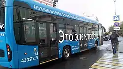 Московский электро́бус — вид московского автобуса, использующий в качестве источника питания электродвигателя аккумуляторные батареи, а в зимнее время — дополнительно дизельный отопитель. В Москве используются электробусы с ультрабыстрой зарядкой, их особенность в литий-титанатных батареях, которые обеспечивают зарядку за 10-18 минут и дают возможность эксплуатировать электробус на городских маршрутах любой протяженности (до следующей зарядной станции). Машины заряжаются от специальных станций, расположенных на конечных[3].